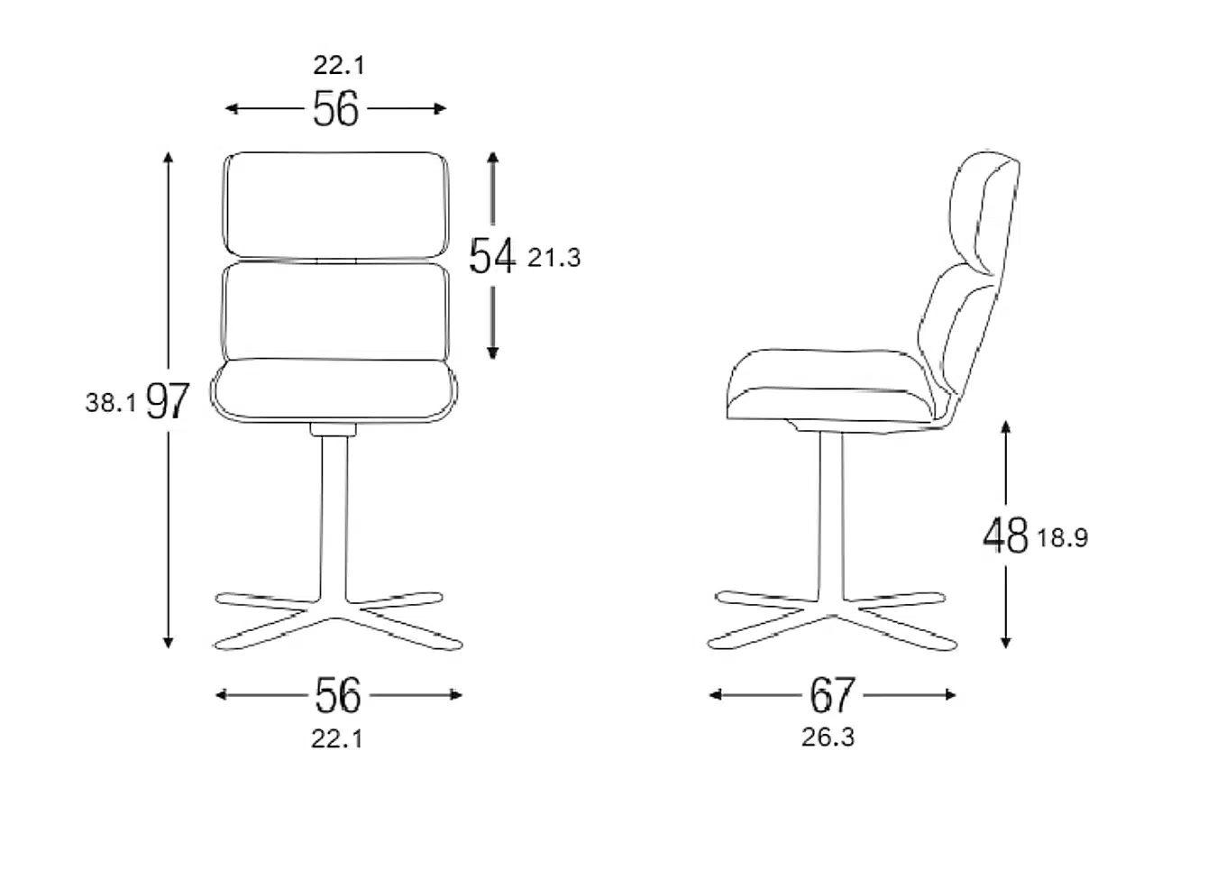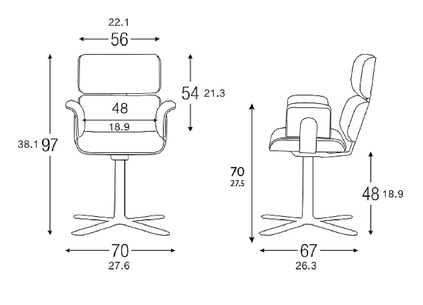 | Dimensiones | Altura total: 97 cm | Ancho respaldo: 56 cm | Ancho brazos: 48 cm |