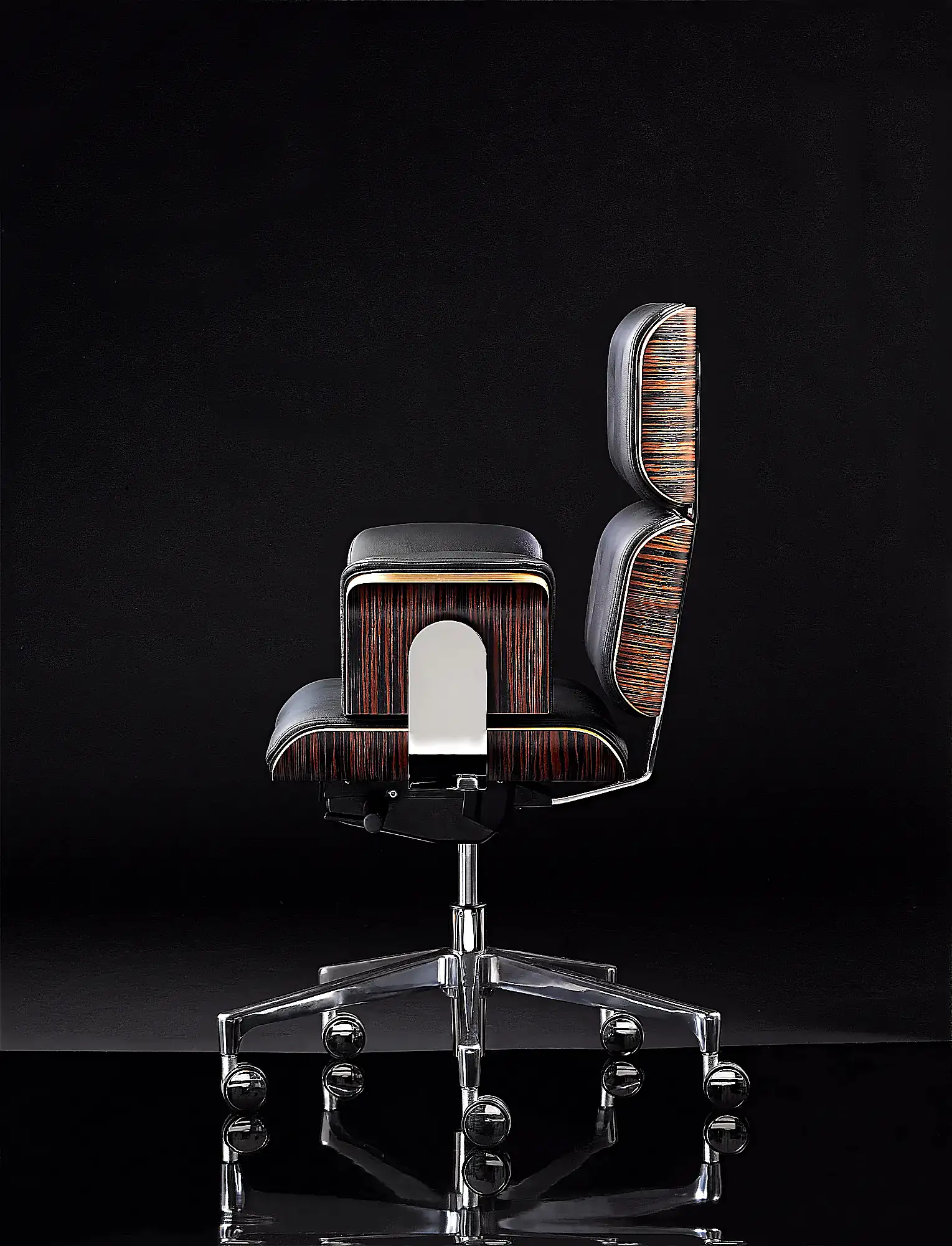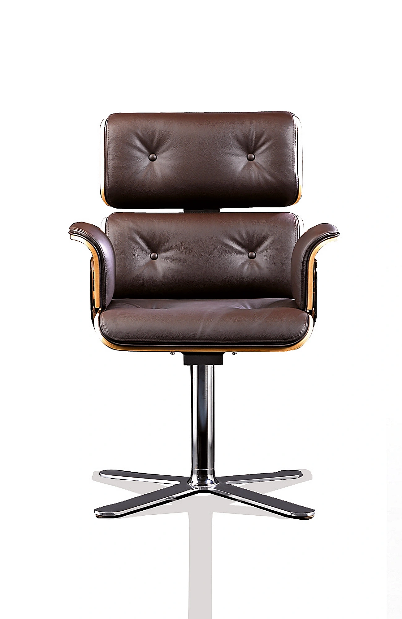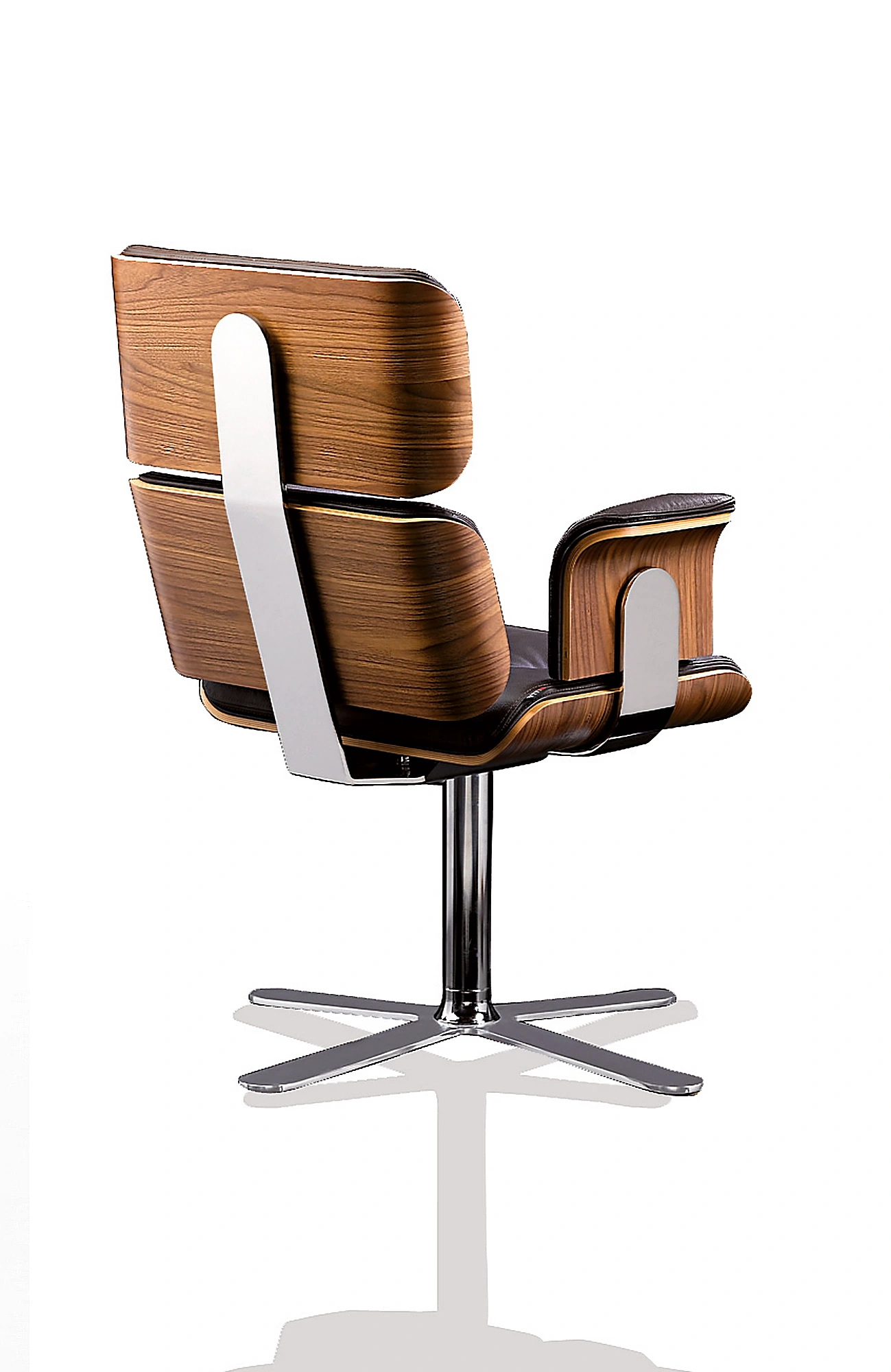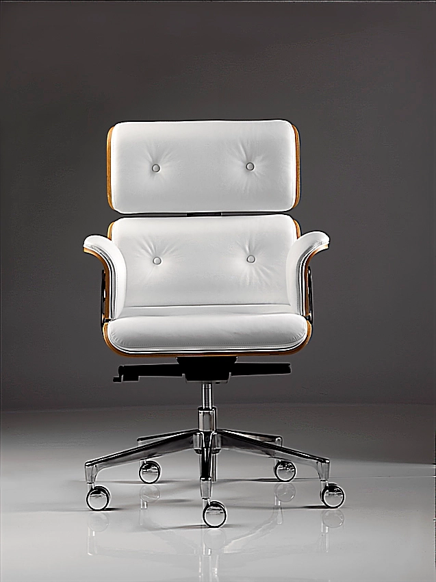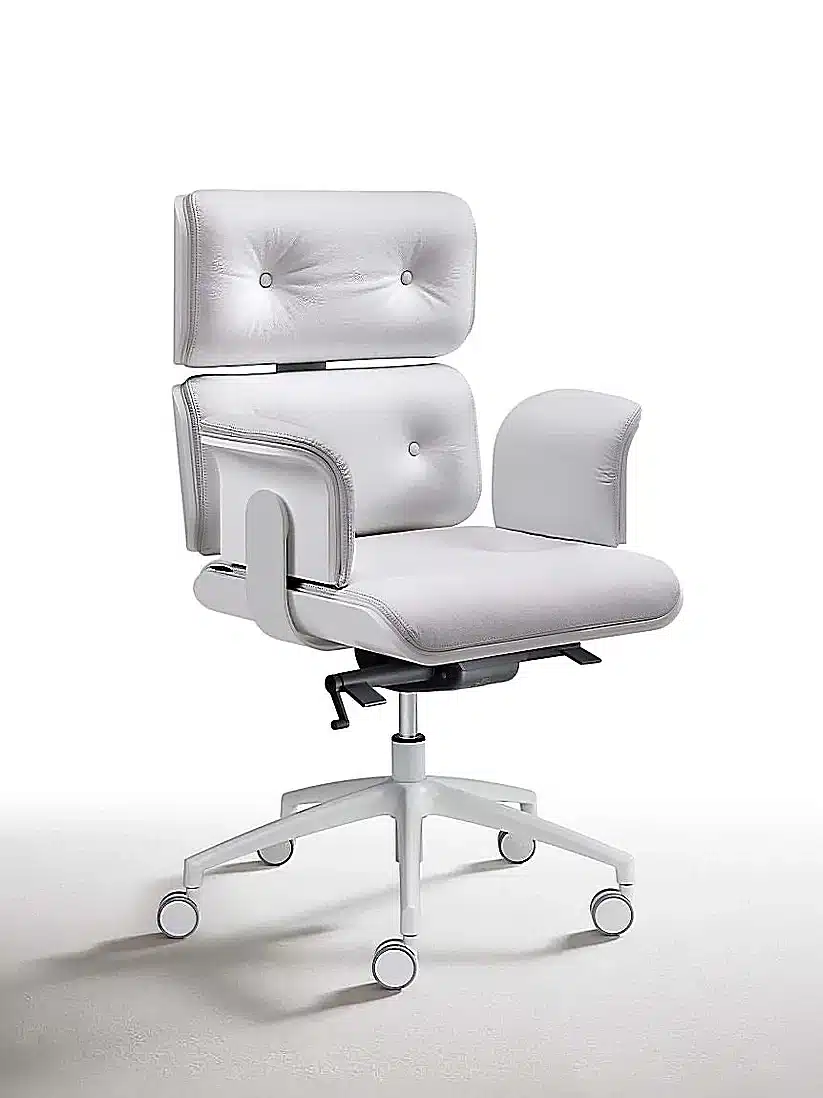 - Carcasa de Madera Moldeada: Los respaldos, el asiento y los reposabrazos cuentan con un reverso de madera curvada. Sublime su sala con maderas preciosas (Nogal Canaletto, Ébano, Palisandro) para un toque clásico, o atrévase con el contraste moderno del lacado (Blanco/Negro) para una sala de reuniones contemporánea.